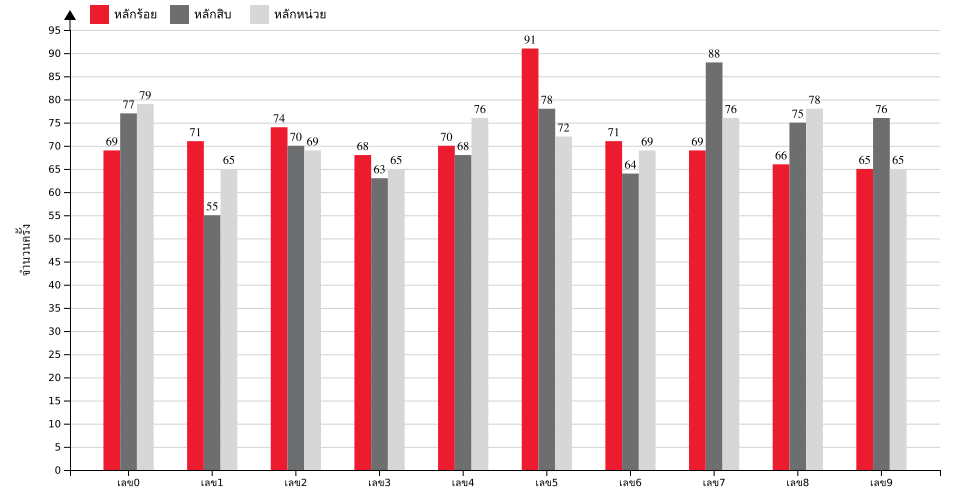 กราฟจำนวนครั้ง เลขท้าย 3 ตัว ที่ออก แยกตามหลัก
