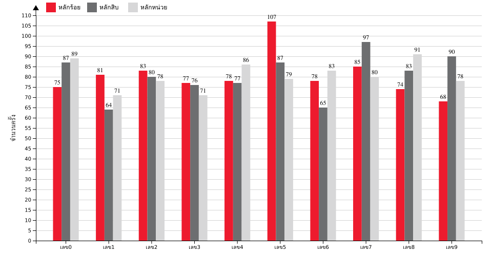 กราฟจำนวนครั้ง เลขท้าย 3 ตัว ที่ออก แยกตามหลัก