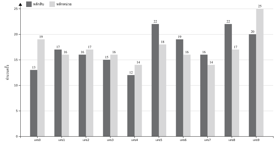 กราฟจำนวนครั้ง เลข 2 ตัวบน ที่ออก แยกตามหลัก